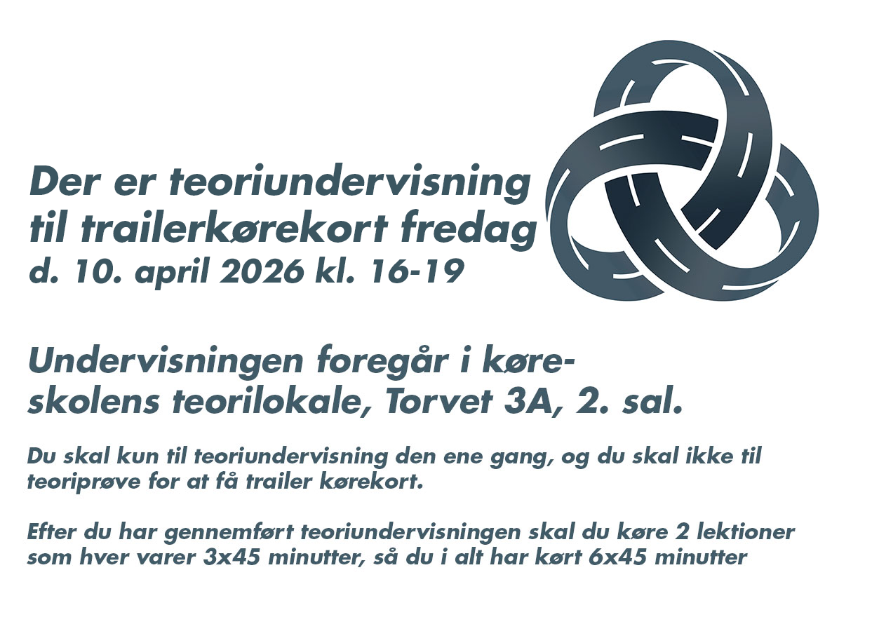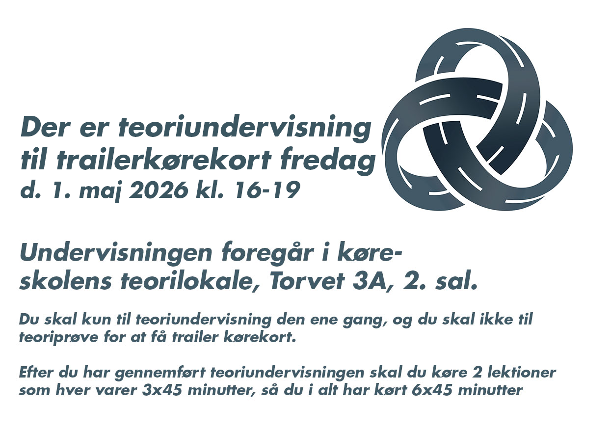 Hvor du kommer igennem forløbet med 3 timers teoriundervisning (4 lektioner af 45 minutter) og to dage med kørse. (hver kørsel er 3 lektioner af 45 minutter)
